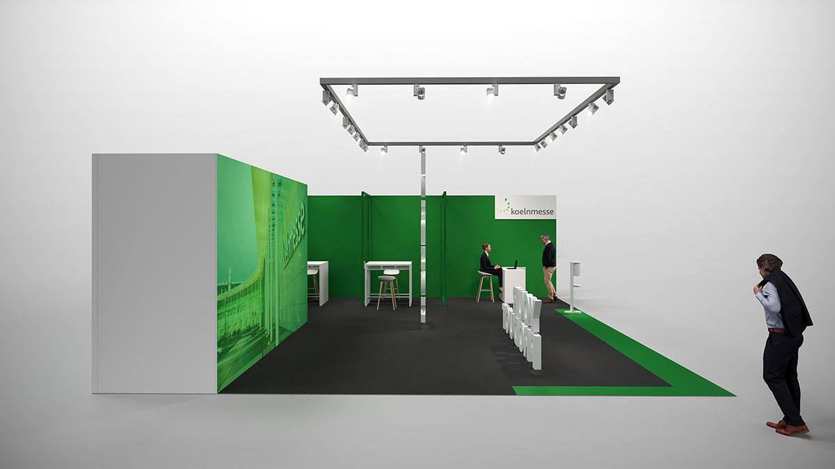 The prices always refer to a W8 x D7 = 56 sqm corner stand. Other stand sizes and shapes (terrace stand, two-corner stand, island stand) are modularly adaptable and can be individually calculated according to your briefing.